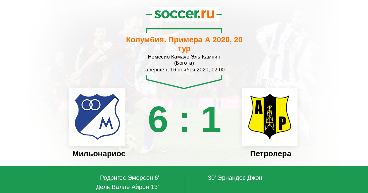 Мильонариос - Петролера: обзор матча 16 ноября 2020