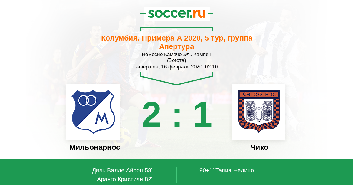 Мильонариос - Чико: обзор матча 16 февраля 2020
