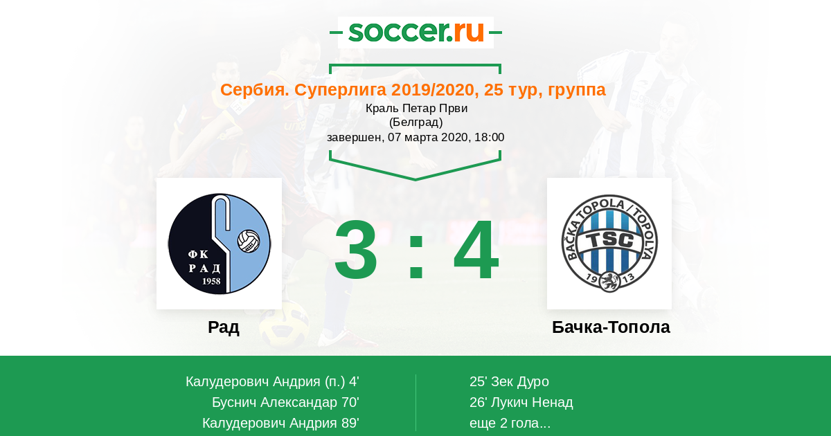 Рад - Бачка-Топола: обзор матча 7 марта 2020