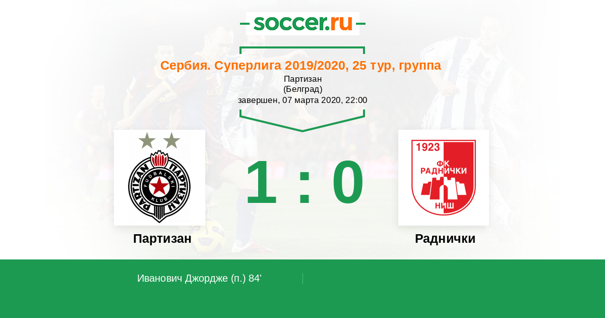 Партизан - Раднички: обзор матча 7 марта 2020