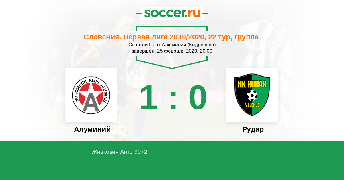 Алуминий - Рудар: обзор матча 25 февраля 2020