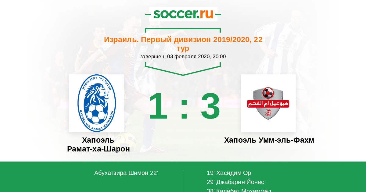 Хапоэль Рамат-ха-Шарон - Хапоэль Умм-эль-Фахм: обзор матча 3 февраля 2020