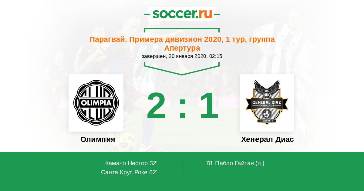 Олимпия - Хенерал Диас: обзор матча 20 января 2020