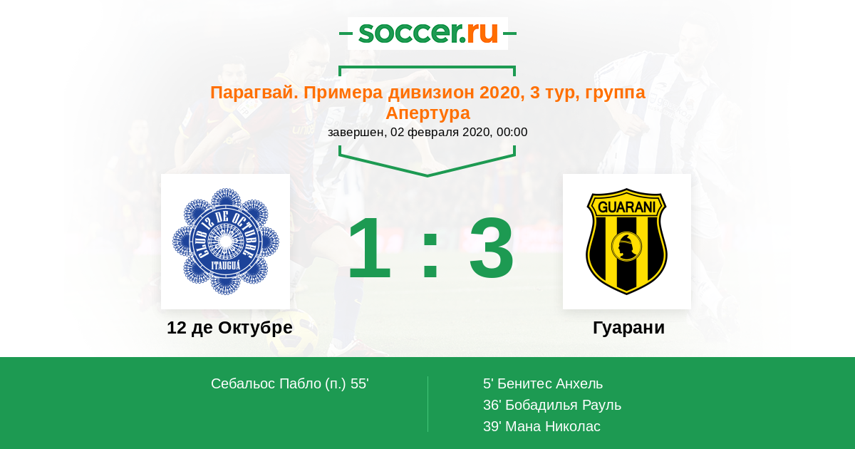 12 де Октубре - Гуарани: обзор матча 2 февраля 2020