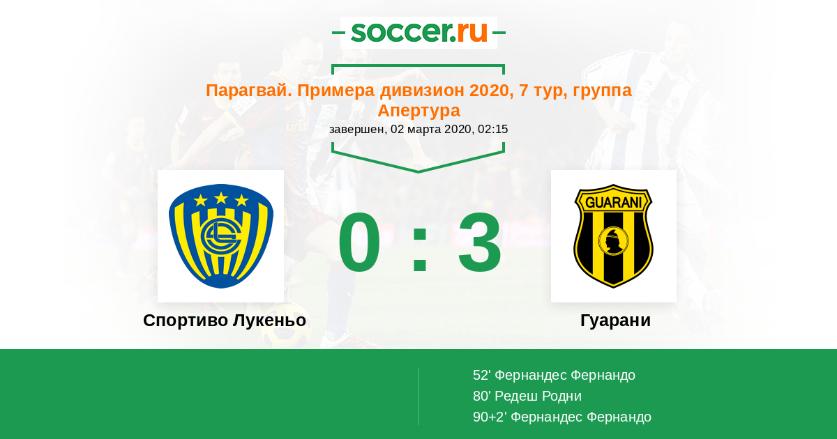 Спортиво Лукеньо - Гуарани: обзор матча 2 марта 2020