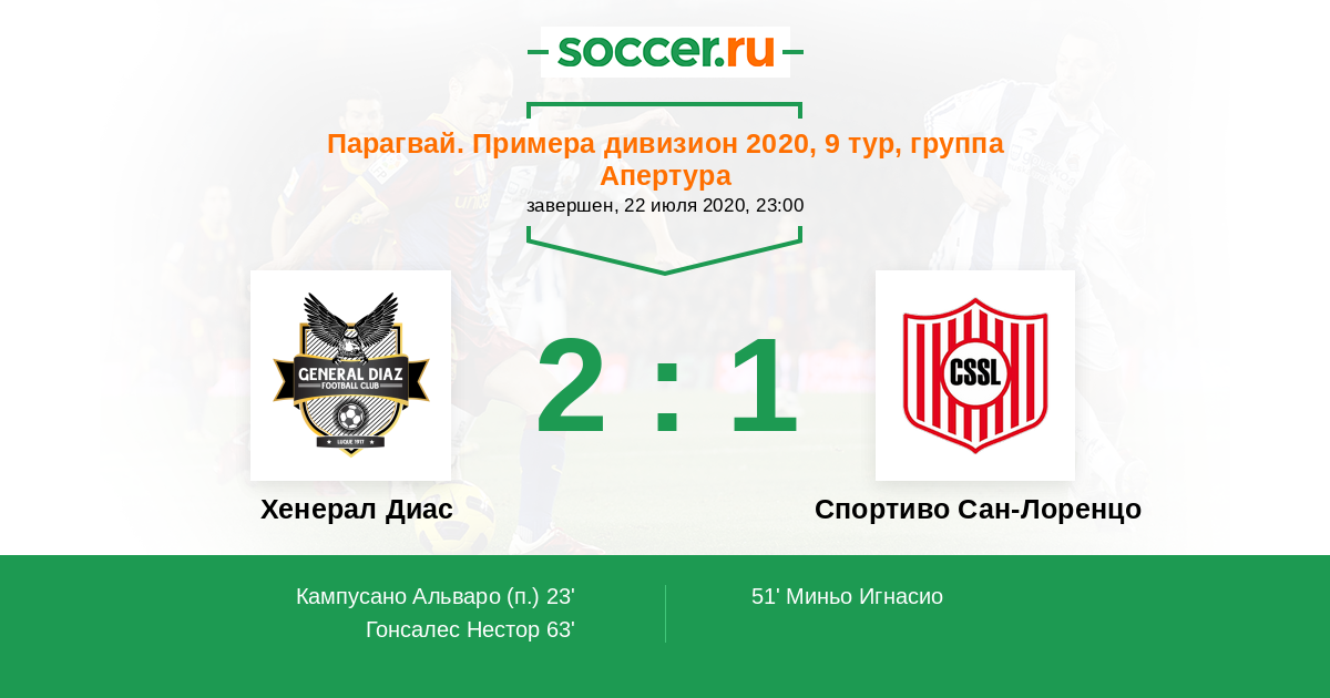 Хенерал Диас - Спортиво Сан-Лоренцо: обзор матча 22 июля 2020