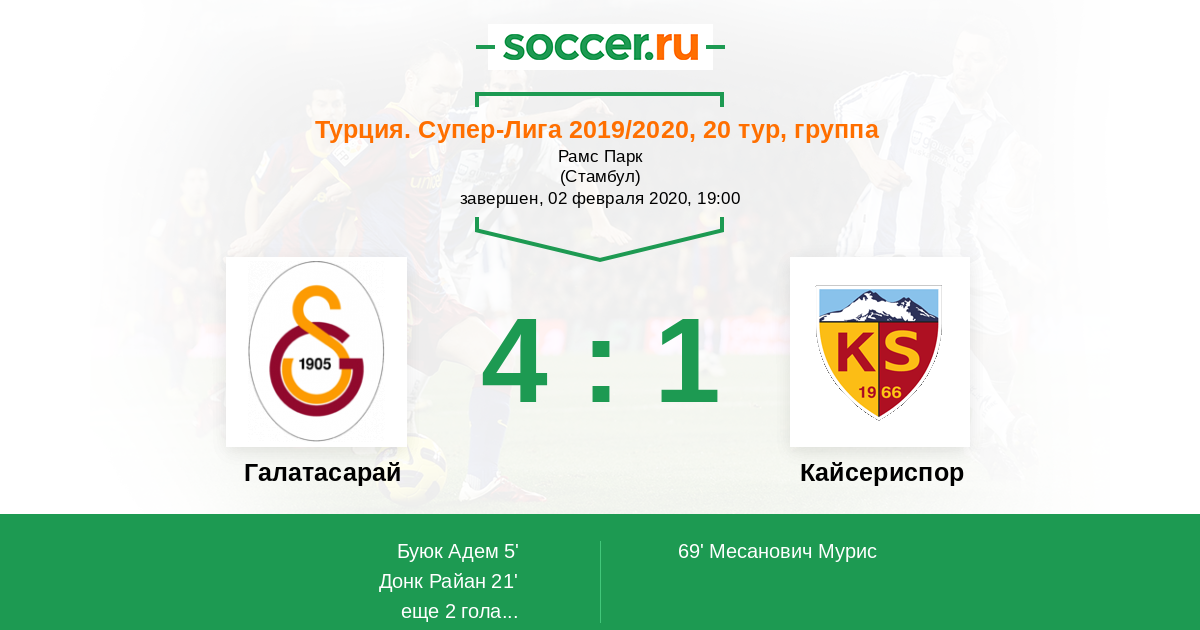 Галатасарай - Кайсериспор: обзор матча 2 февраля 2020