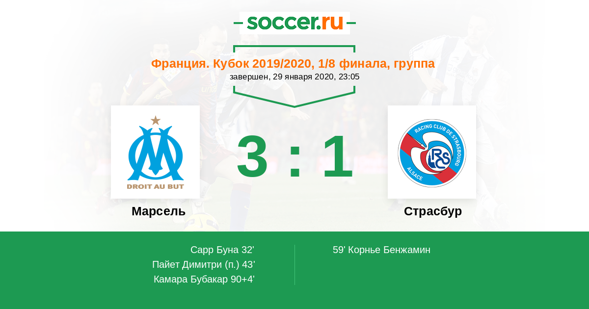 Марсель - Страсбур: обзор матча 29 января 2020