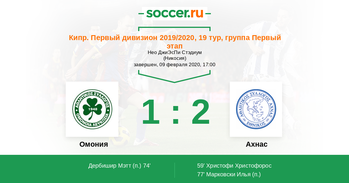 Омония - Ахнас: обзор матча 9 февраля 2020