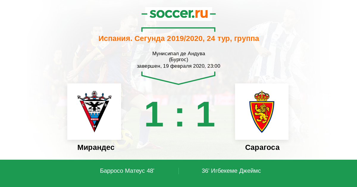 Мирандес - Сарагоса: обзор матча 19 февраля 2020