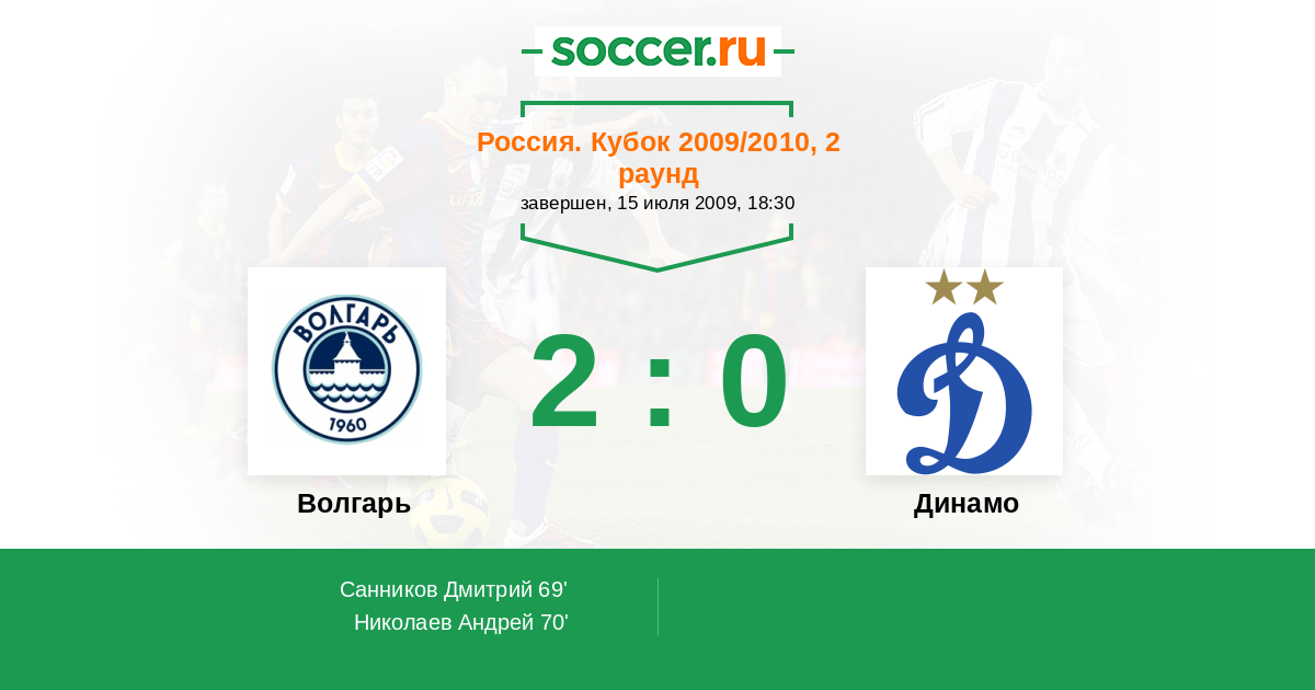 Волгарь-Газпром-2 - Динамо: обзор матча 15 июля 2009