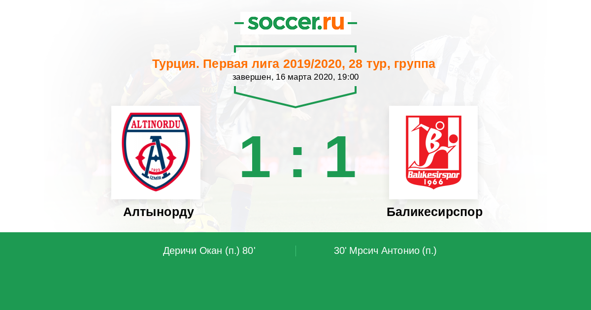 Алтынорду - Баликесирспор: обзор матча 16 марта 2020