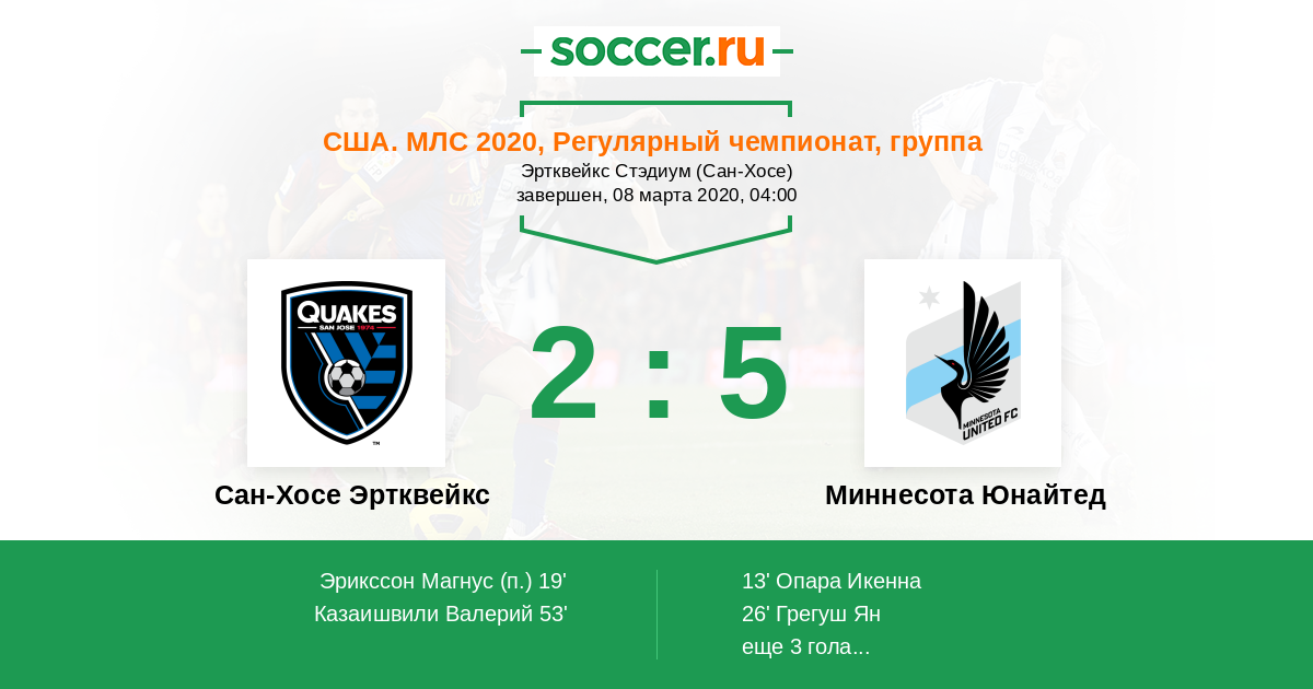 Сан-Хосе Эртквейкс - Миннесота Юнайтед: обзор матча 8 марта 2020