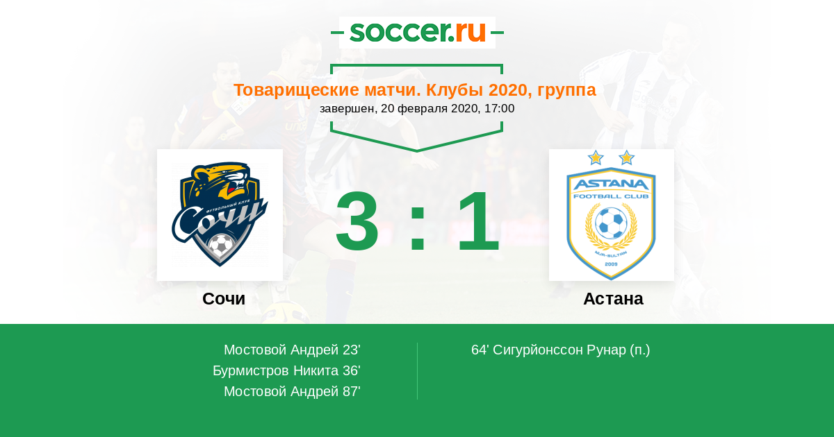 Сочи - Астана: обзор матча 20 февраля 2020