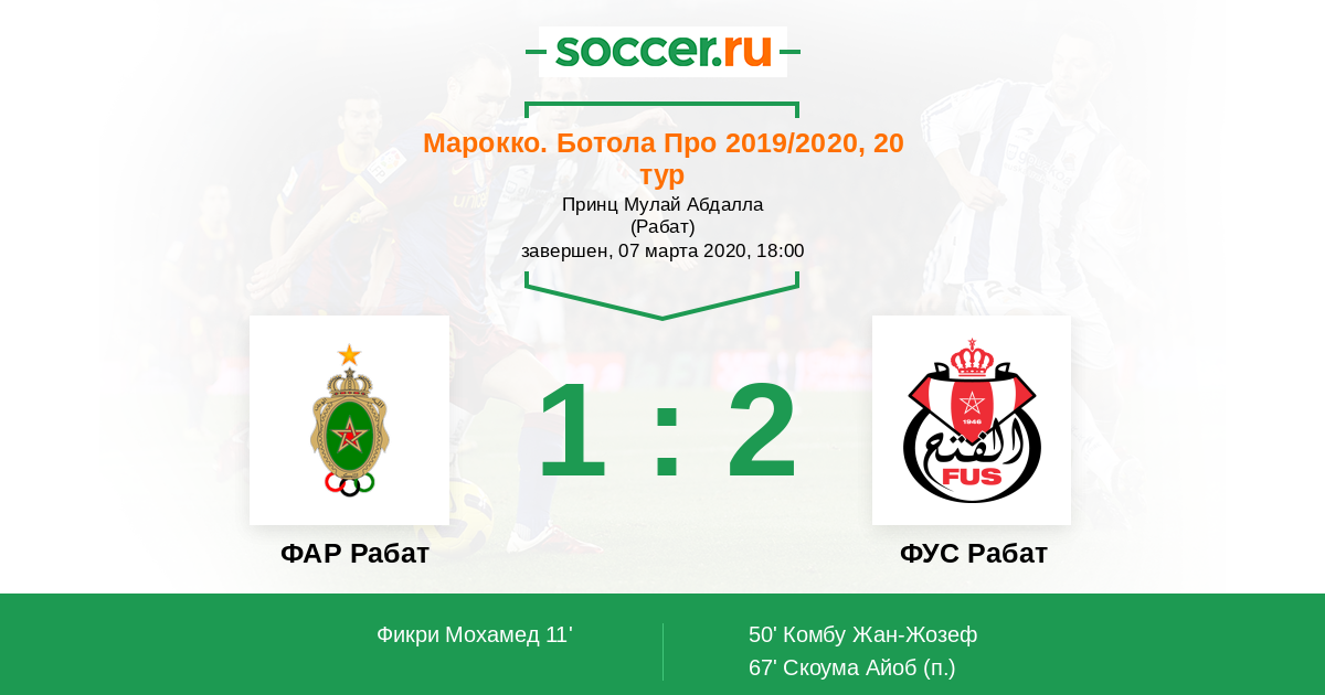 ФАР Рабат - ФУС Рабат: обзор матча 7 марта 2020