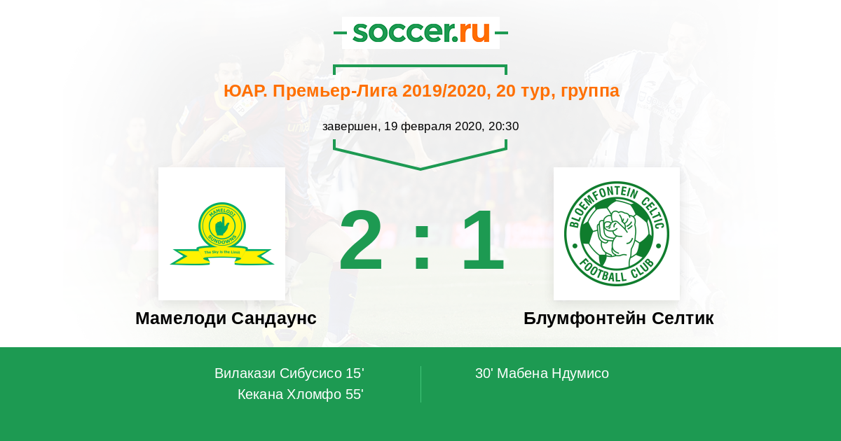 Мамелоди Сандаунс - Блумфонтейн Селтик: обзор матча 19 февраля 2020