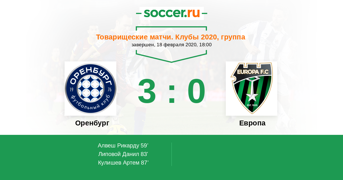 Оренбург - Европа: обзор матча 18 февраля 2020
