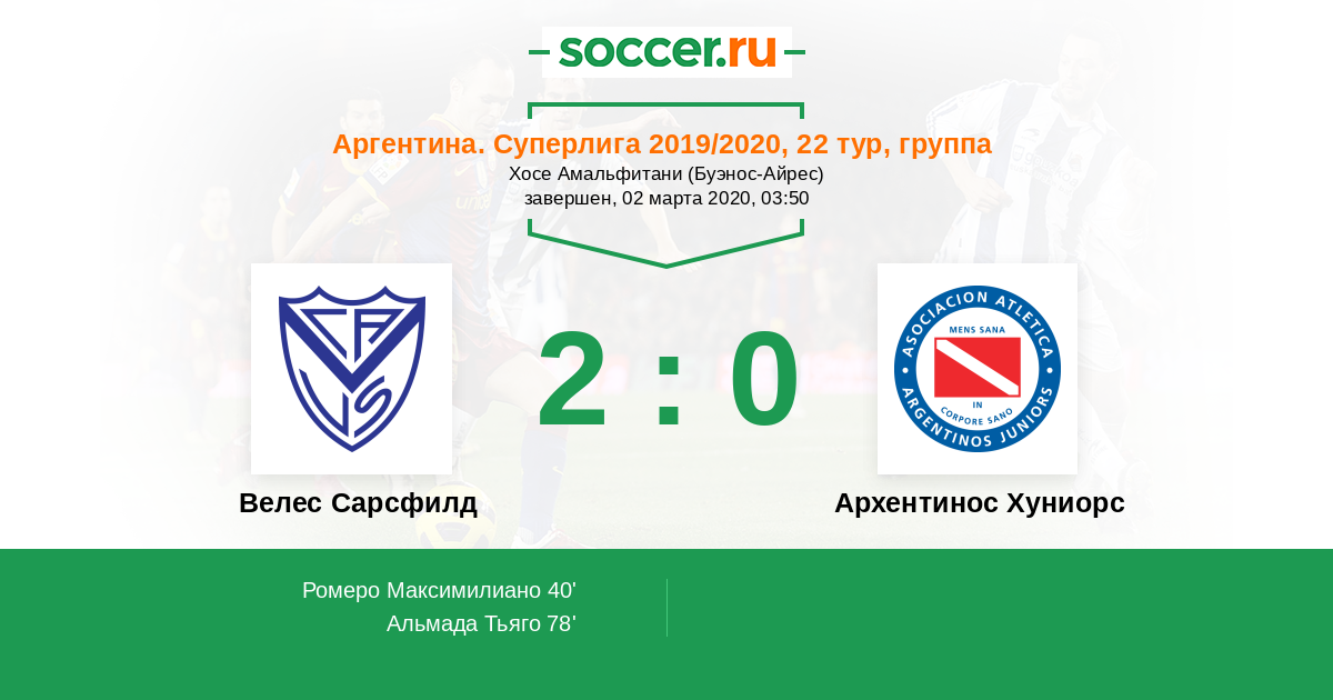Велес Сарсфилд - Архентинос Хуниорс: обзор матча 2 марта 2020