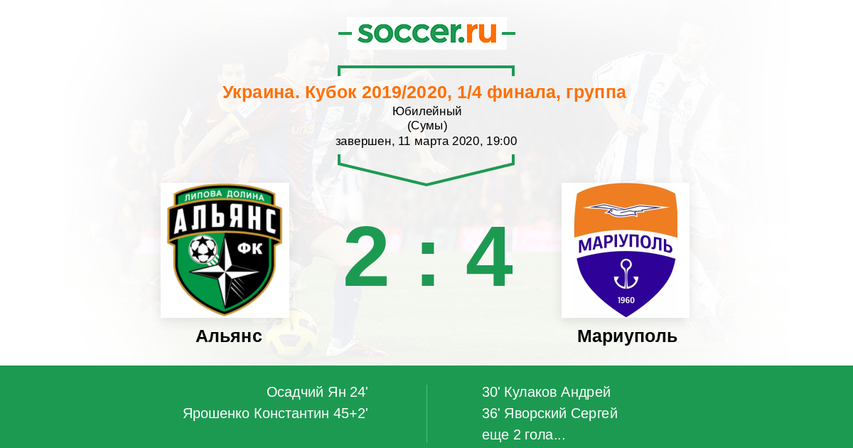 Альянс - Мариуполь: обзор матча 11 марта 2020