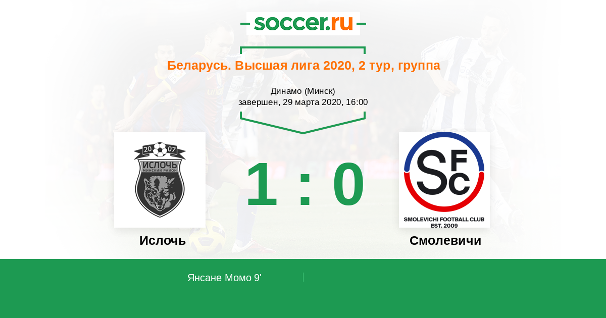 Ислочь - Смолевичи: обзор матча 29 марта 2020