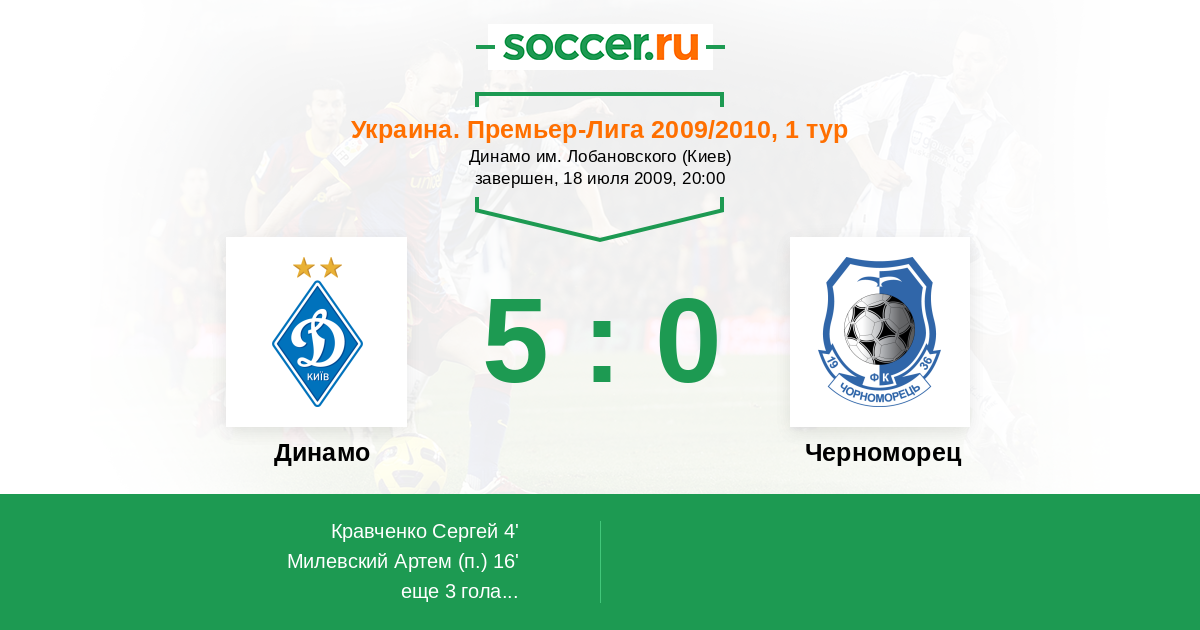 Динамо - Черноморец: обзор матча 18 июля 2009