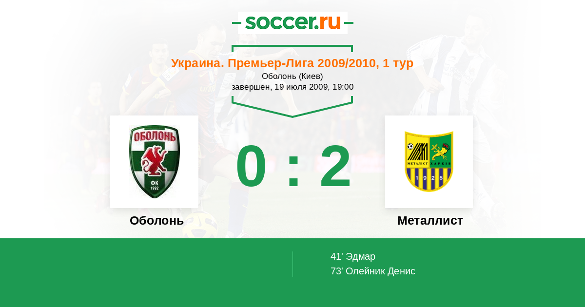 Оболонь - Металлист : обзор матча 19 июля 2009