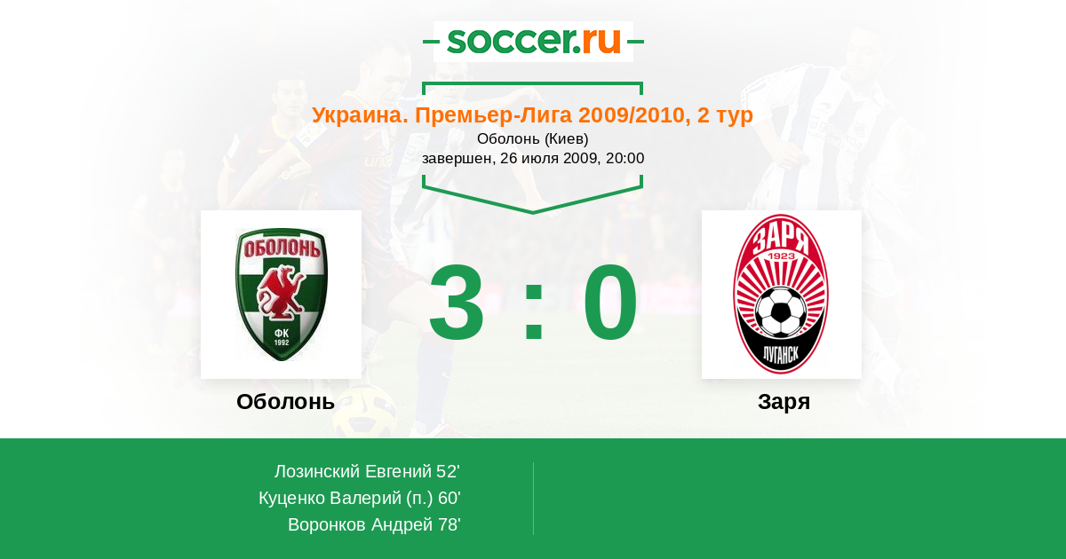 Оболонь - Заря: обзор матча 26 июля 2009