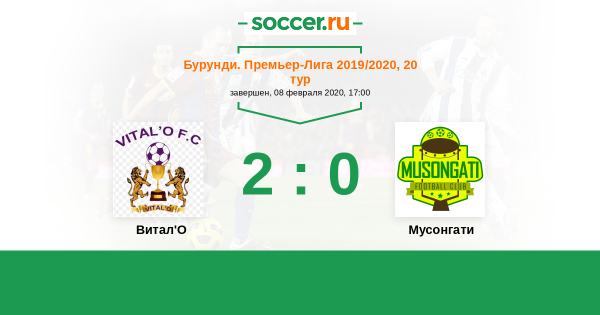 Витал'O - Мусонгати: обзор матча 8 февраля 2020
