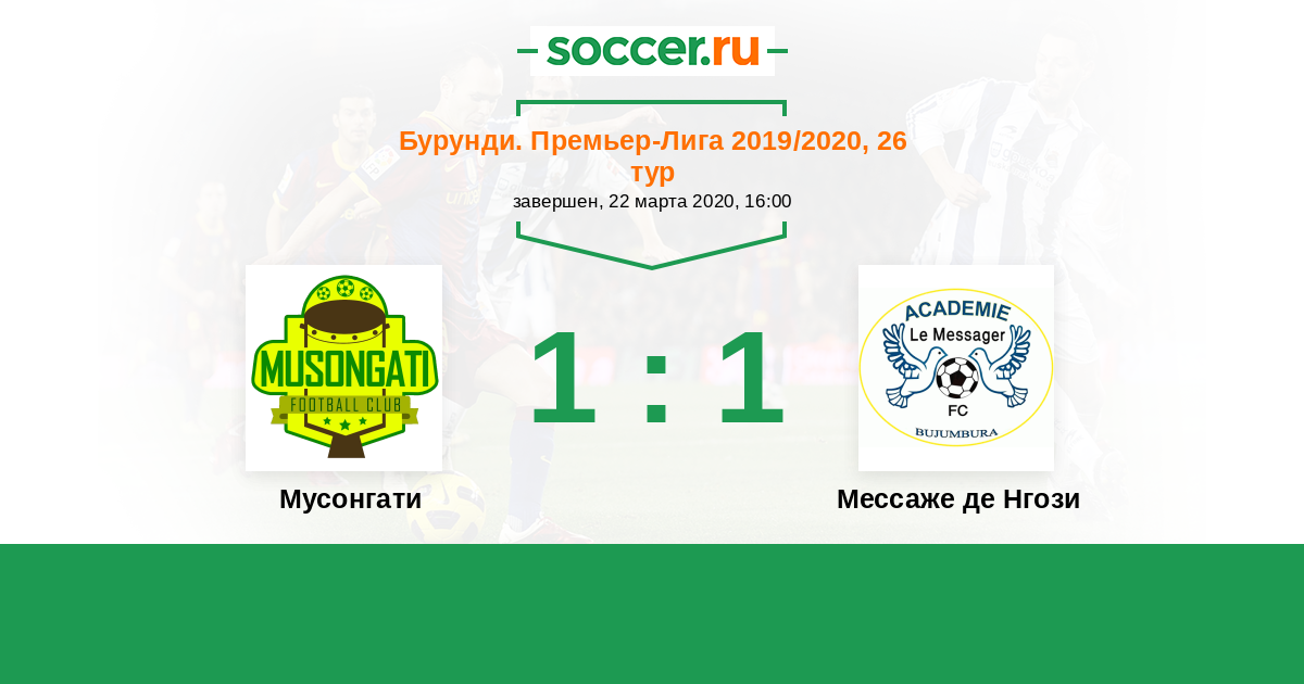 Мусонгати - Мессаже де Нгози: обзор матча 22 марта 2020