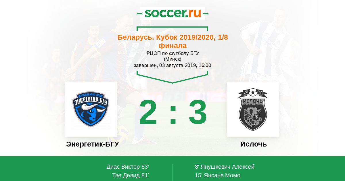 Энергетик-БГУ - Ислочь: обзор матча 3 августа 2019