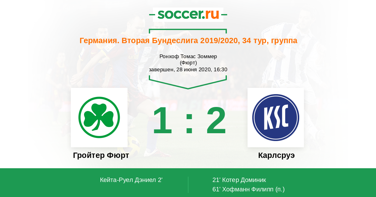 Гройтер Фюрт - Карлсруэ: обзор матча 28 июня 2020