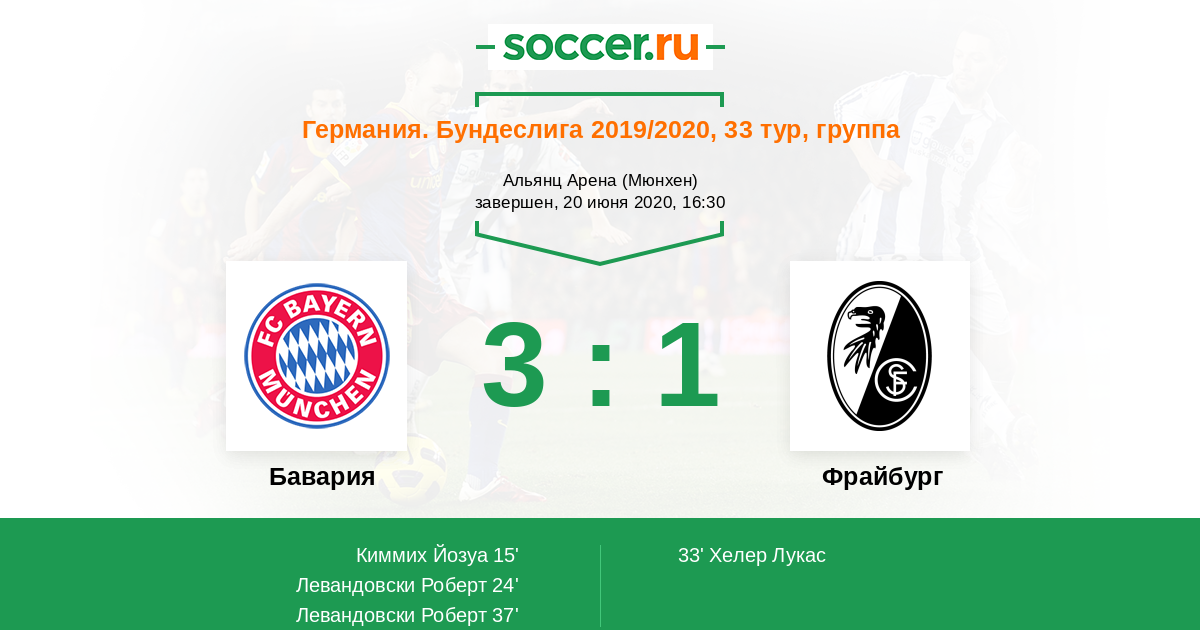 Бавария - Фрайбург: обзор матча 20 июня 2020
