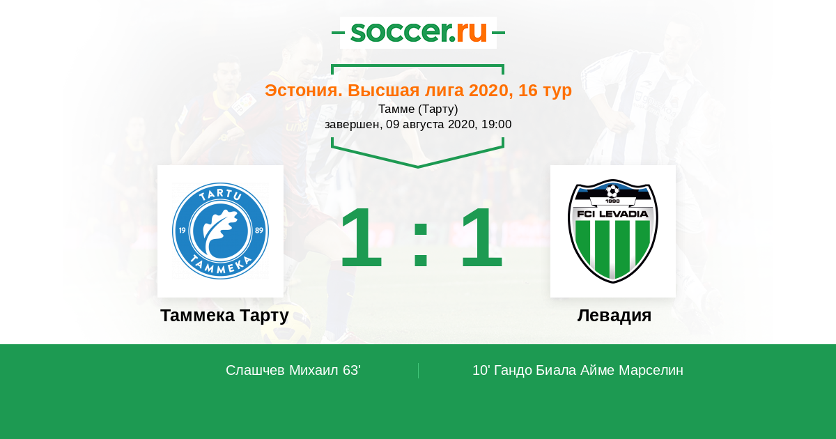 Таммека Тарту - Левадия: обзор матча 9 августа 2020