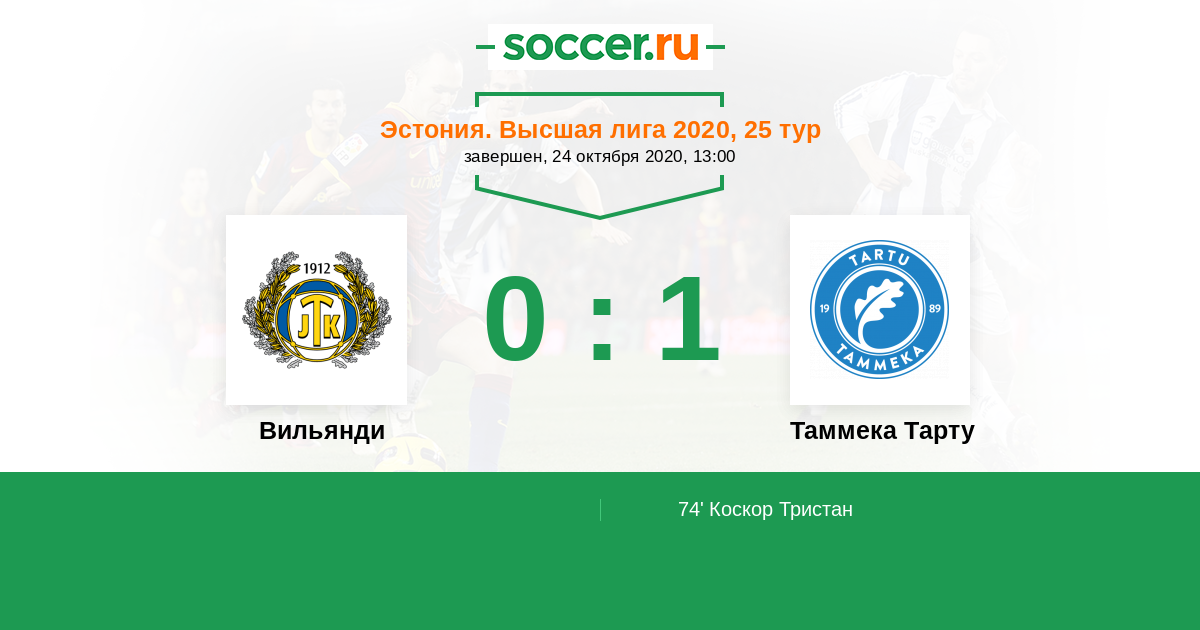 Вильянди - Таммека Тарту: обзор матча 24 октября 2020
