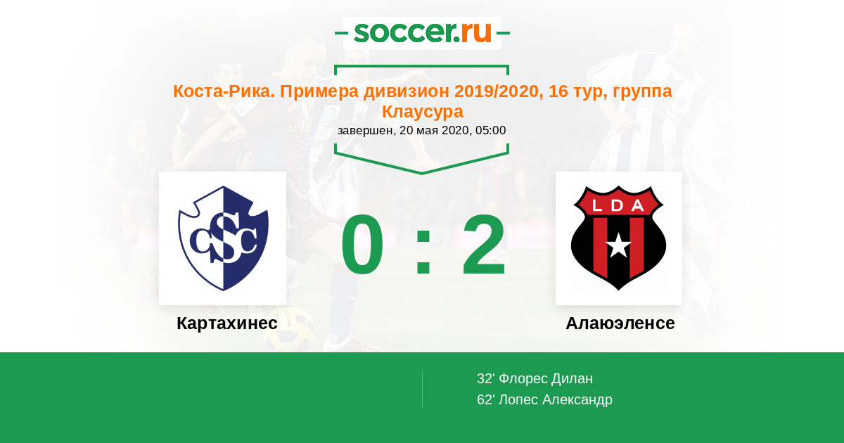 Картахинес - Алаюэленсе: обзор матча 20 мая 2020
