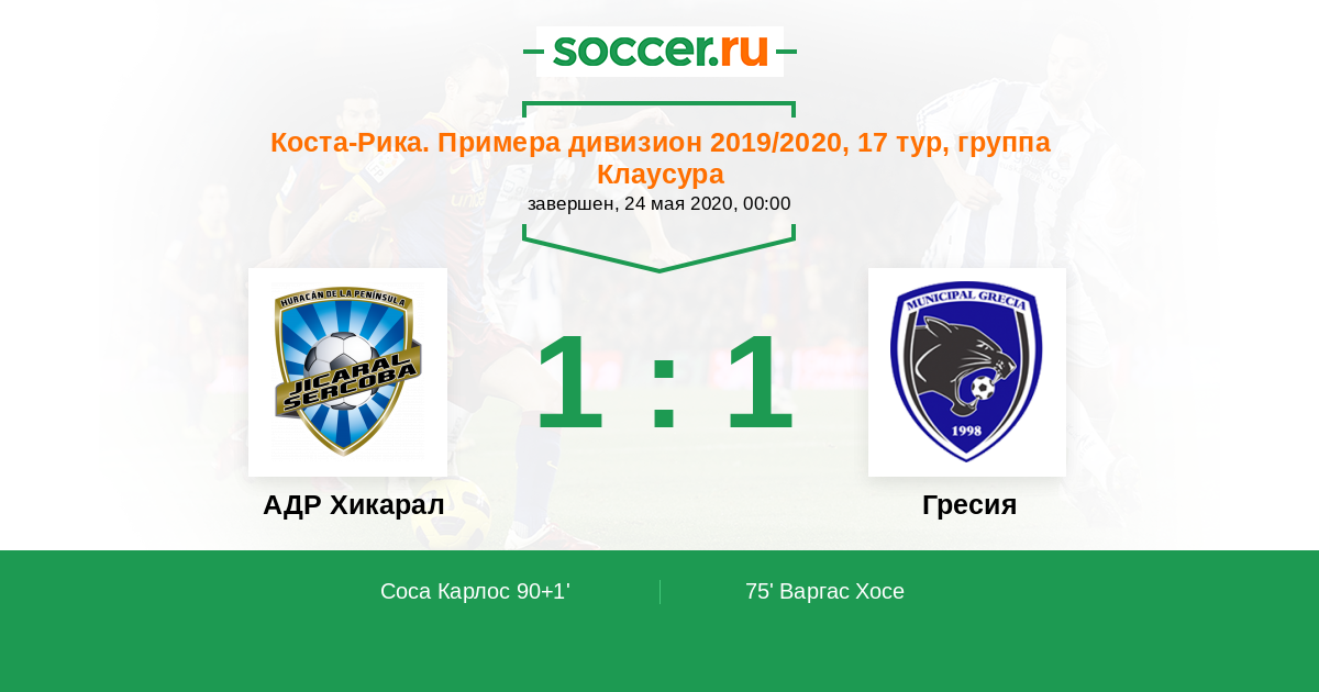 АДР Хикарал - Гресия: обзор матча 24 мая 2020