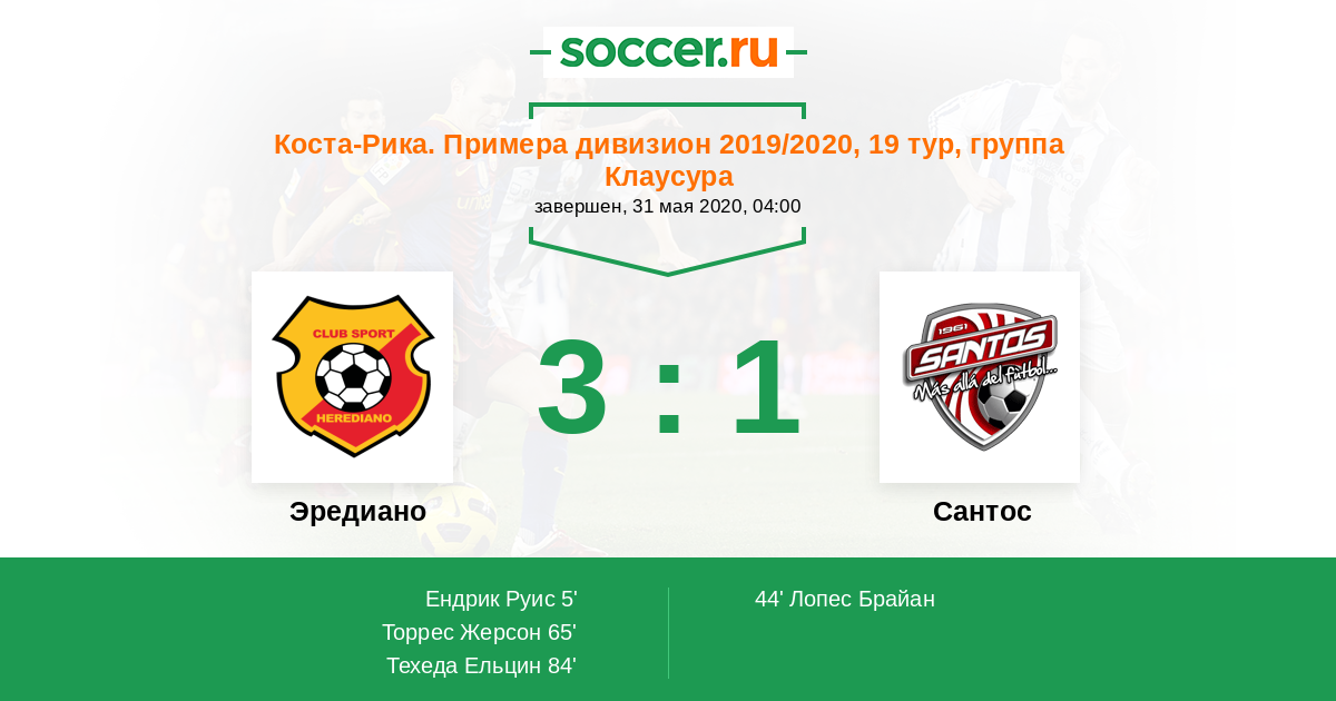Эредиано - Сантос: обзор матча 31 мая 2020