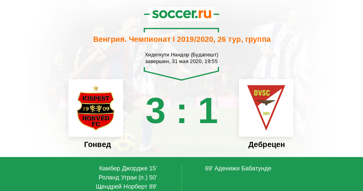 Гонвед - Дебрецен: обзор матча 31 мая 2020