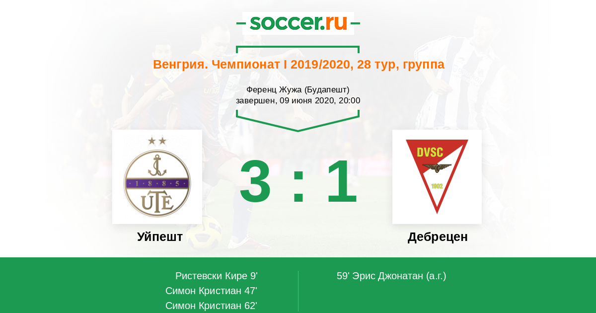 Уйпешт - Дебрецен: обзор матча 9 июня 2020