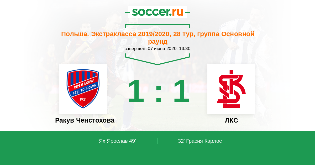 Ракув Ченстохова - ЛКС: обзор матча 7 июня 2020