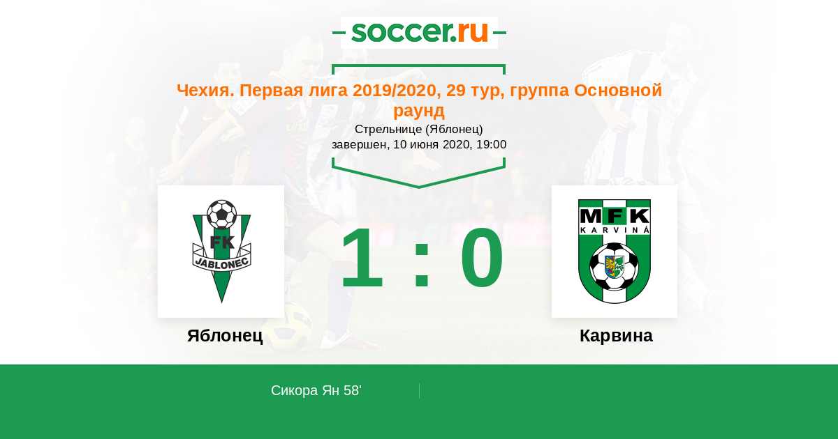 Яблонец - Карвина: обзор матча 10 июня 2020