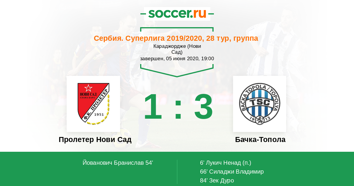 Пролетер Нови Сад - Бачка-Топола: обзор матча 5 июня 2020