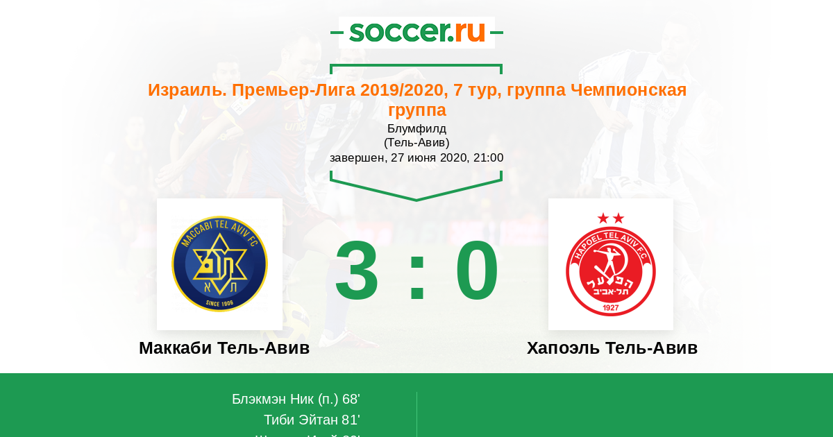 Маккаби Тель-Авив - Хапоэль Тель-Авив: обзор матча 27 июня 2020