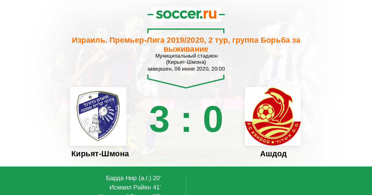 Кирьят-Шмона - Ашдод: обзор матча 6 июня 2020