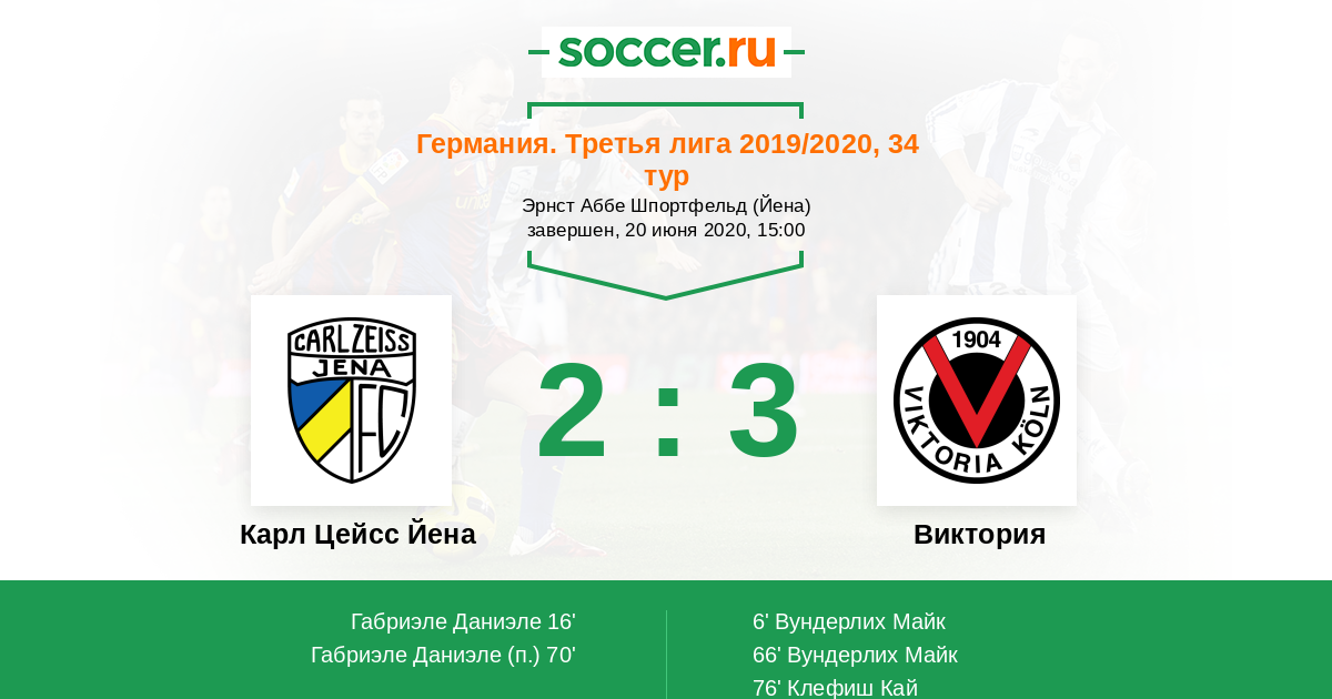 Карл Цейсс Йена - Виктория: обзор матча 20 июня 2020