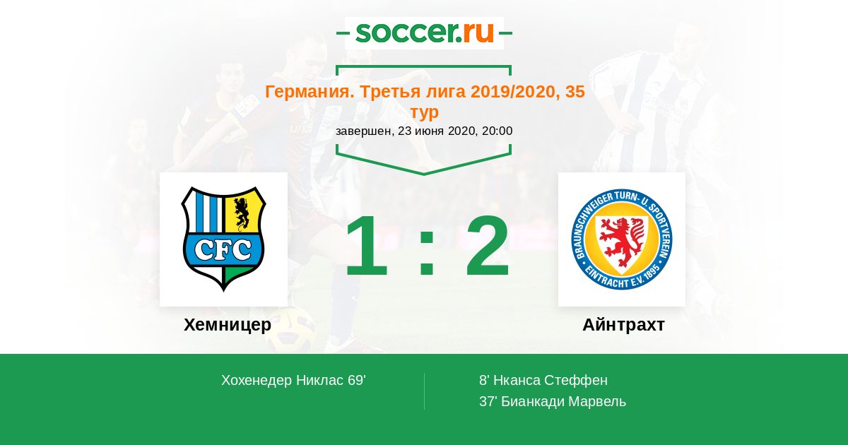 Хемницер - Айнтрахт: обзор матча 23 июня 2020