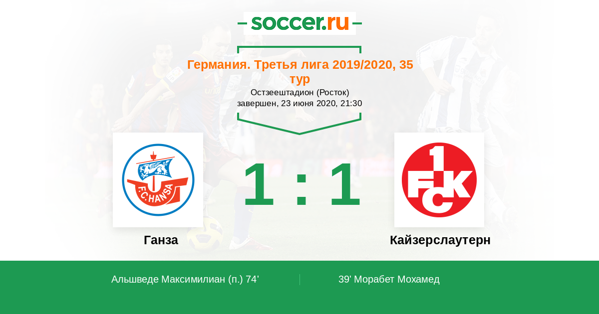 Ганза - Кайзерслаутерн: обзор матча 23 июня 2020
