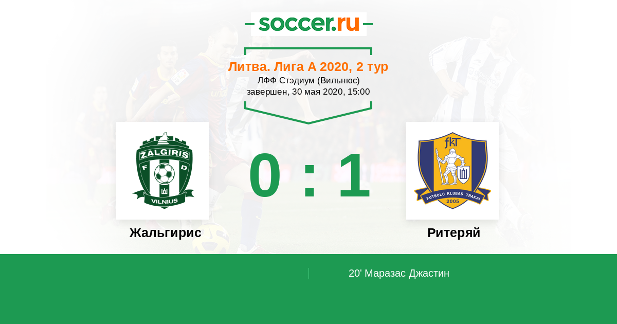Жальгирис - Ритеряй: обзор матча 30 мая 2020
