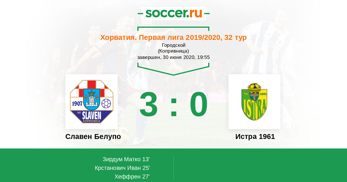 Славен Белупо - Истра 1961: обзор матча 30 июня 2020