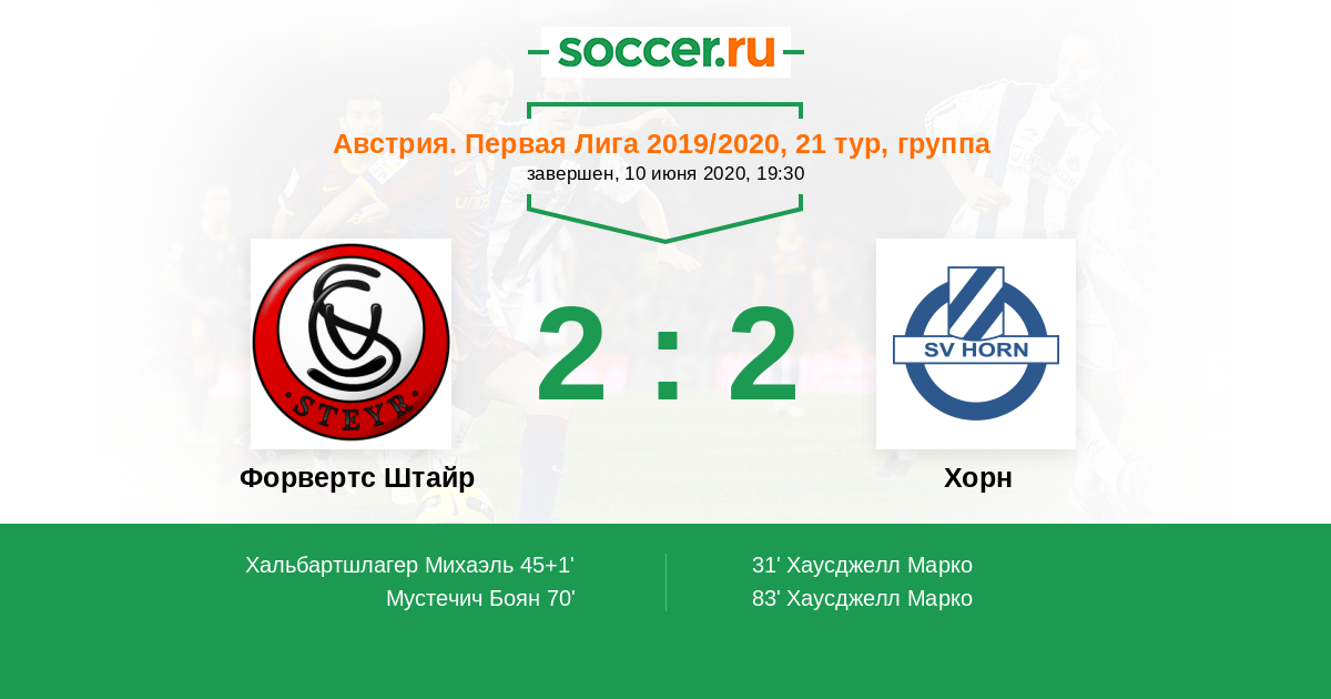 Форвертс Штайр - Хорн: обзор матча 10 июня 2020